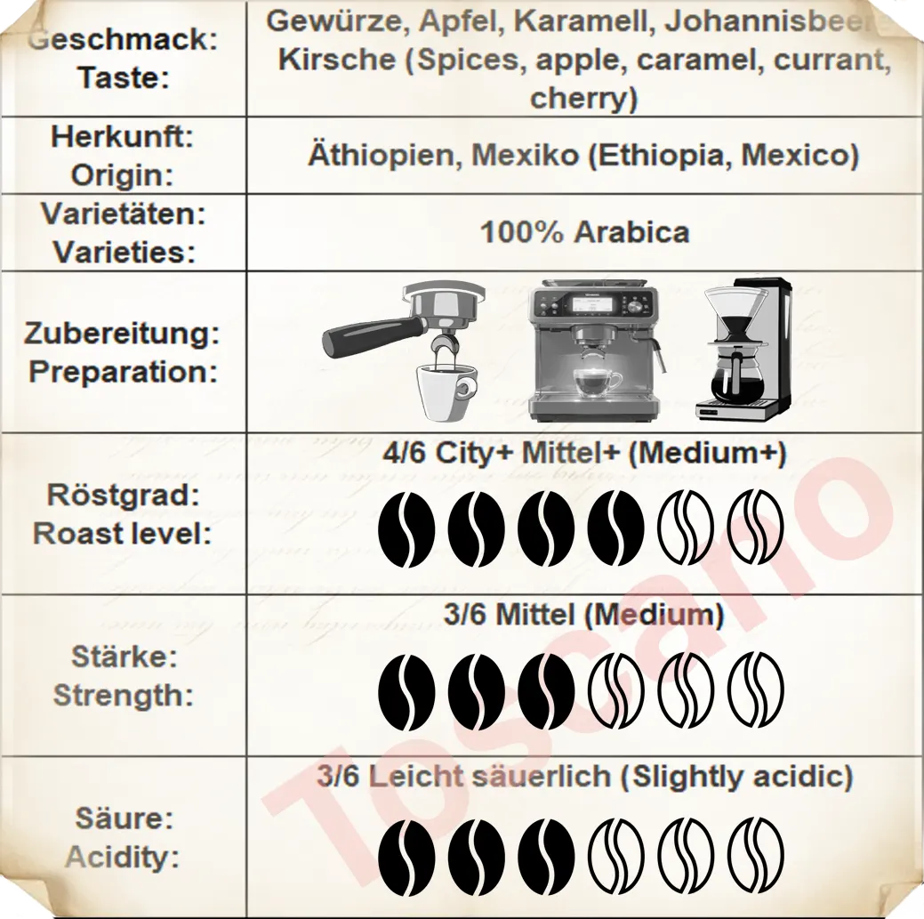 100 % Arabica aus den Hochlagen, nach einem speziellen Espresso-Rezept geröstet